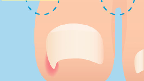 軽度の巻き爪で痛みがなく、生活に支障がなければ、必ずしも治療の必要はありませんが、爪切りには注意が必要です。痛みがある場合はテーピングなどで痛みを軽減させ、⽖を適切に切り直すことで改善を図ります。