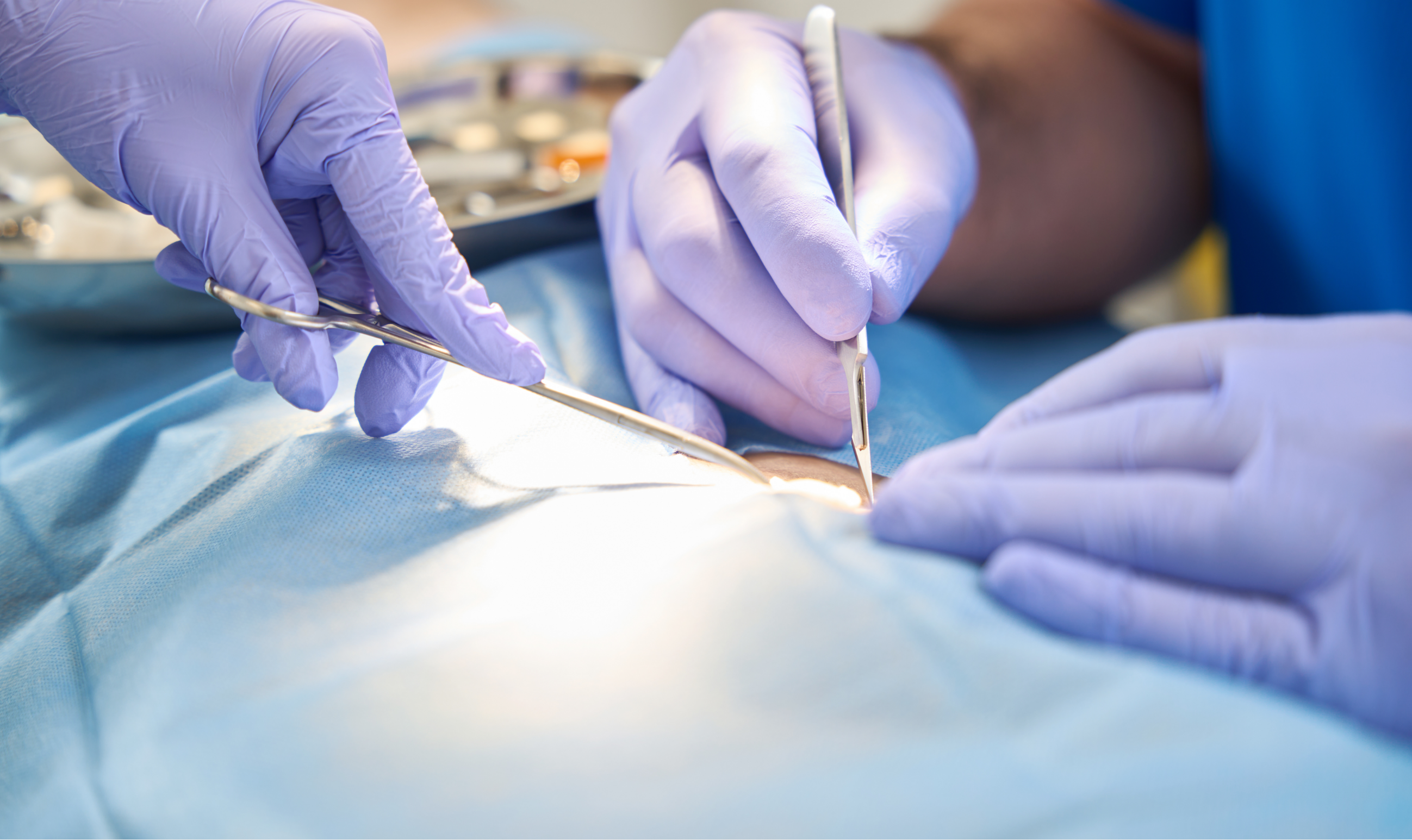 脂肪腫の⼀般的な治療法は、外科的切除です。大きさが小さく、皮膚の下に生じる「浅在性脂肪腫」であれば、局所⿇酔下で日帰り手術を行うことができます。